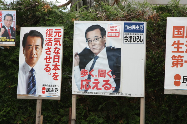 旅行時正逢日本在選眾議院議員,到處都可以看見競選海報。在富良野看到自由民主黨的這張競選海報時,忍不住噗嗤一笑,今津寬先生好像隨時都在接任務、很明星式地穿起風衣的出動架勢,讓人連想到日劇Hero中的木村拓哉。連我們這種外國人對今津寬先生的宣傳海報都留下深刻的印象,不得不說想出這點子的人還真是厲害。