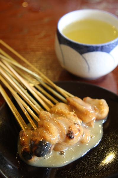 一本(串)有2糰餅,碳火將黃豆粉烤得香噴噴,再淋上甜甜的白味噌,QQ軟軟的あぶり餅,15串不到一下子就全部吃進肚。
