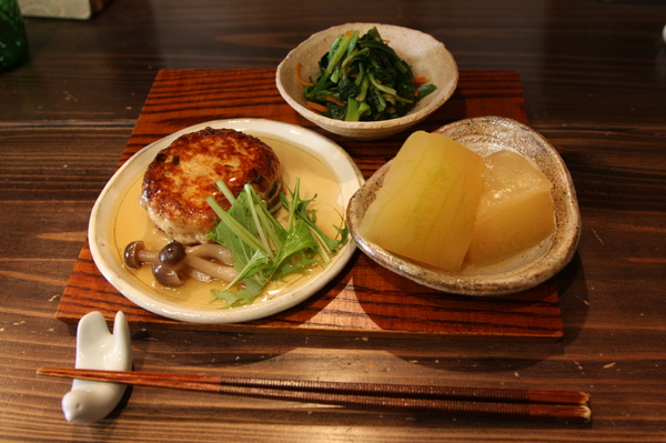 玄米在口中越嚼越有香味,而三碟菜中看似像漢堡肉的食物,輕輕一咬,居然是豆腐所製,感覺上吃的很健康,但卻不失美味。