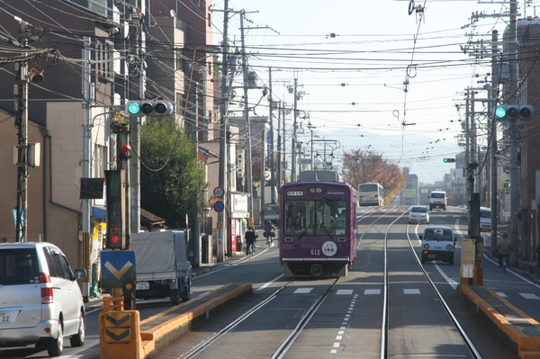 嵐電,相信很多人對它不陌生,嵐電行車路線有分嵐山本線和北野線兩條,大部份的旅人從京都前往嵐山都會選擇嵐電來搭程。嵐電比較特別的路段是從西大路三条到蚕ノ社這段,是路面電車的運轉模式,也就是說在這一段路上可以看到車輛與嵐電共用馬路的場景。