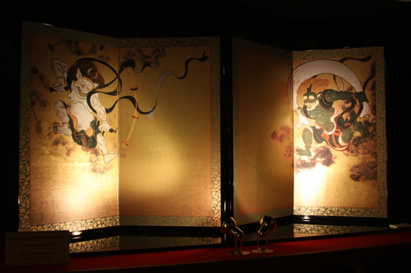 江戸時代を代表する画家俵屋宗達の真作。右邊是風神,左邊是雷神,金光閃閃、栩栩如生。看著看著,心中便響起Pia-no-jaC的「組曲『 』」。