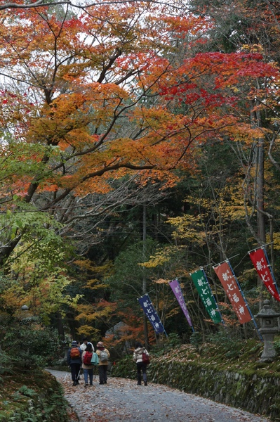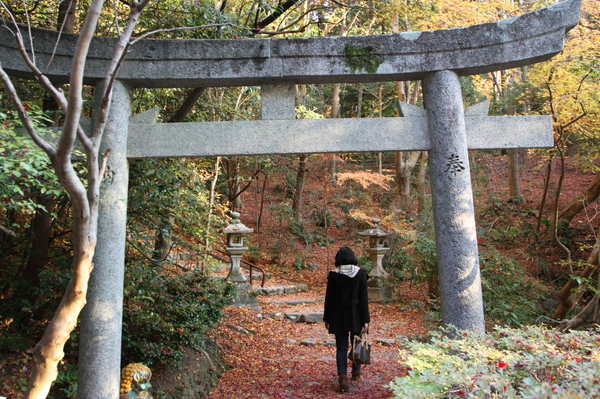 趁著還有天光的午后,從鷺森神社加快腳步走到赤山禪院。進入赤山禪院的大鳥居之後,緊接著就是長長的一條小坡道。紅葉稀落,已經快要進入尾聲了。旅客也是三三兩兩。