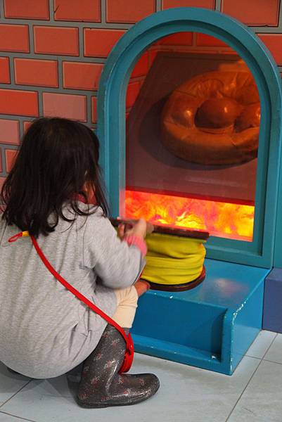 送進烤爐的麵包會隨著加壓風力而迅速膨漲。真的很有趣的設施,小細節做得很好,連大人也能同樂。