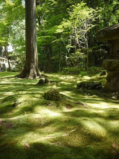 七月初,大原當日天氣雖然還是懊熱難耐,不過入山門後一大片的綠意,尤其是美麗的青苔更有視覺清涼效果。
