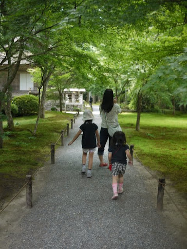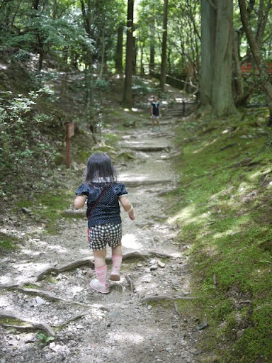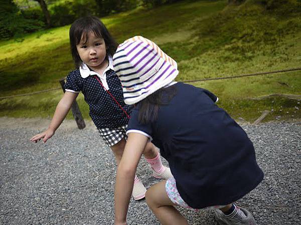 帶著孩子入廟寺,想要在拜觀庭院來個大人們的賞景風雅當然是不可能的。這一回少了緣廊發呆的機會,重心全擺在可以讓孩子跑跑走走的三千院偌大庭園裡。