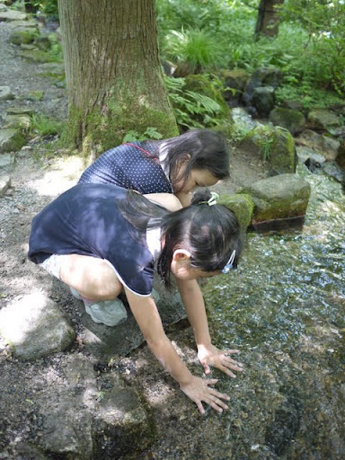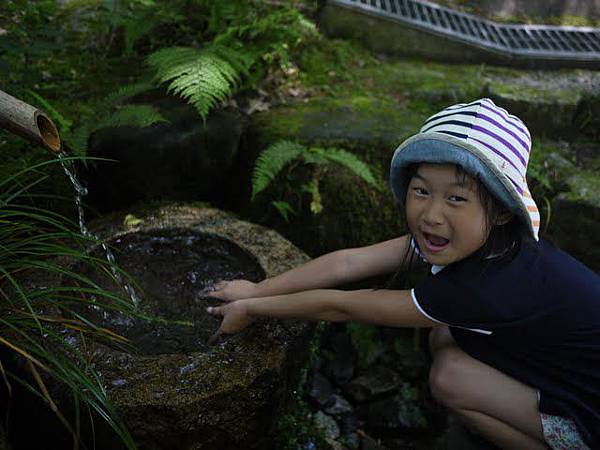 小溪、小石頭和流水缽全成了孩子們眼中的樂園,來來回回在林木庭園間玩耍,原來,三千院也有這番樂趣。