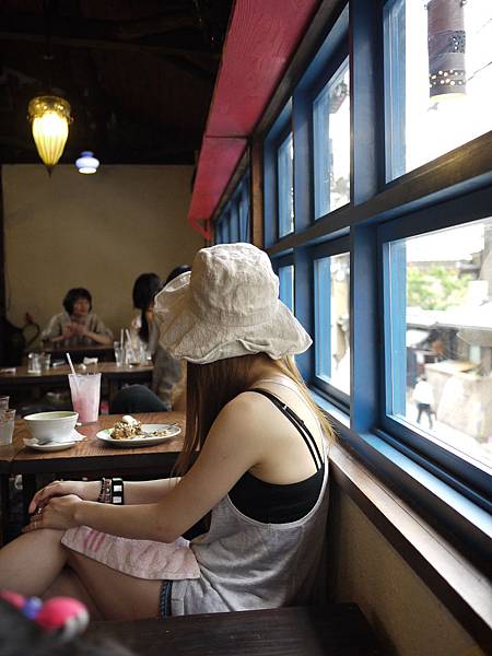 サラサ麩屋町Pausa離三条的よーじや很近,二階藍色的窗櫺,遠遠地就吸引住我的目光。走近一瞧,原來是sarasa系列CAFE之一。湊巧遇到,就決定進去喝杯飲料消消暑氣。