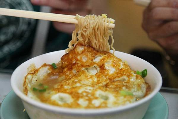 煎蛋公仔麵,湯底是店家自己熬煮的,滋味不錯。