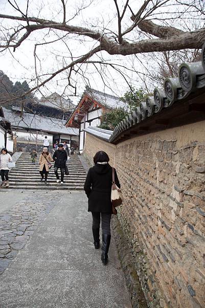沿著泥黃的城牆,緩緩地走在參道上,看看舒國治寫:「最美的牆景,莫非奈良二月堂走下來,往大湯屋方向,下坡處的幾面院牆,那股泥黃,那份曲折角度,那種永遠不見閒人之寧靜,而我何其幸運竟在此經過。」
