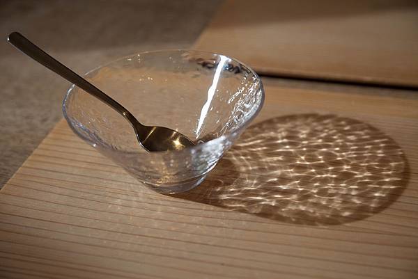 甜品吃完,器皿與陽光玩起美麗的光影遊戲。