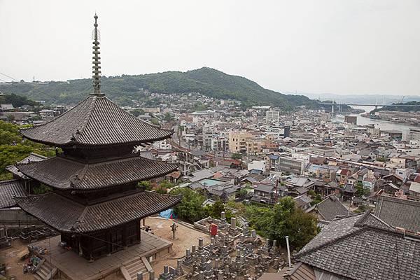 從天寧寺坂の坂上可以看見三重塔,與港口相望,勾勒出尾道的坂道風情。