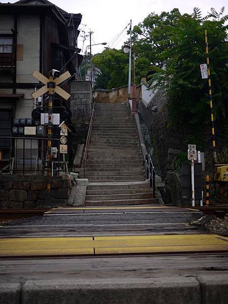 這個千光寺的登山口,會有JR山陽本線通過,坂道與鐵道就這樣直直對望。