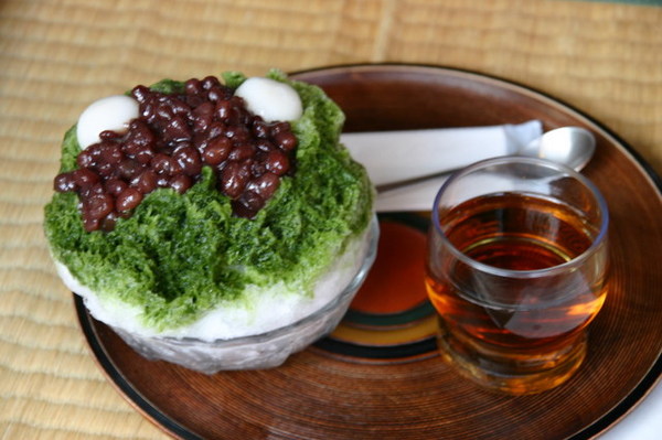 來京都吃甜品,應該都不會錯過宇治金時(抹茶紅豆冰)。宇治、金時分別意指抹茶和紅豆。宇治是日本著名的茶葉產地,而金時為何代表紅豆呢?說法有兩種:一是現在所用的紅豆,在以前是用「金時豆」。另一種說法,是說加入砂糖煮過的紅豆,就好像「金太郎」(坂田金時)的臉一般紅,所以將紅豆稱之為「金時」。而宇治金時也常常會加入白玉,就是白色的麻糬(很像我們這邊沒有包餡地大湯圓)。我個人深深覺得抹茶搭上紅豆真是絕配,難怪這麼多人對於宇治金時冰這麼戀戀不忘。