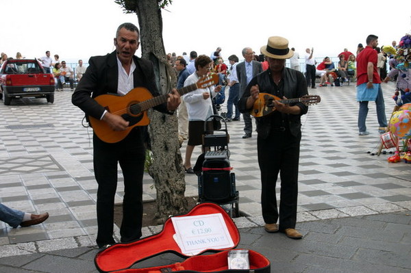 多數的遊客都集中在Corso Umberto主街道上,Piaza 9 Aprile廣場上有街頭藝人正在彈唱「教父」電影主題曲,氣氛棒極了,覺得想把這樣的感覺帶回來,所以買了一張街頭藝人的CD,也就是現在Blog播的音樂。