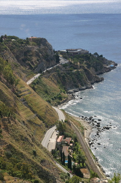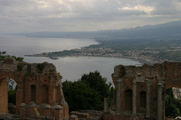 Taormina座落在西西里島東海岸邊,倨250公尺高丘上,有『天空之城』的別稱。這個歷史悠遠的小城,仰望可見埃特納火山,俯瞰可見美麗的Lonio海灣,絕佳的天然景觀,深受歐美人士喜愛,夏天總是遊客如織,也讓小古城幾乎每走幾步就可見到餐廳或者Hotel林立。